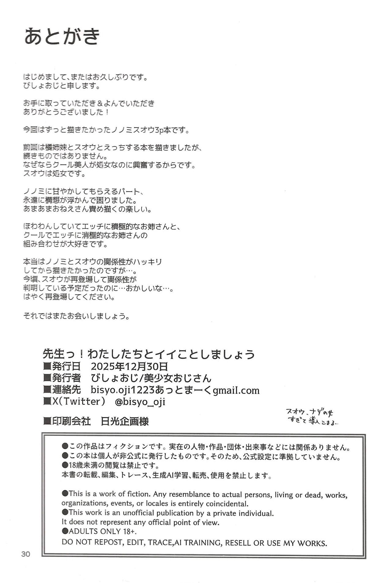 先生っ!わたしたちとイイことしましょう 02.24 05:34 ブルーアーカイブ 十六夜ノノミ朝霧スオウ 美少女おじさん 2025年冬コミ(C107)アヘ顔かわいいキスダブルフェラトロ顔パイズリバックフェラむちむちメイド中出し口内射精巨乳授乳手コキ水着汗だく